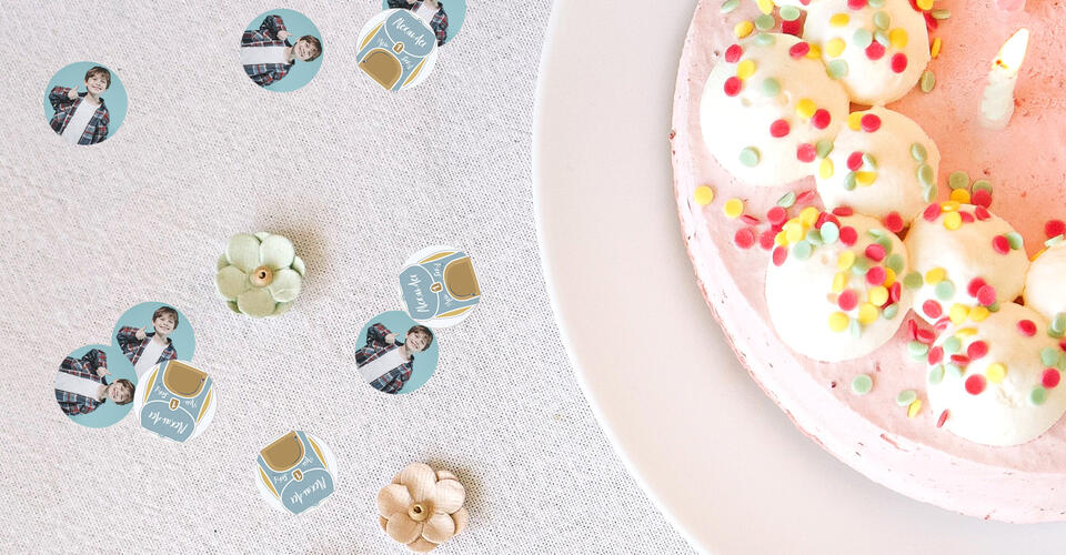 Zaubere den Gästen Deiner Einschulungsfeier mit selbst erstelltem Konfetti ein Lächeln ins Gesicht. Such Dir jetzt eines unserer fröhlichen Designs aus und personalisiere die Streudeko ganz einfach online mit den Lieblingsfotos des Schulkindes und Deinem eigenen Text.