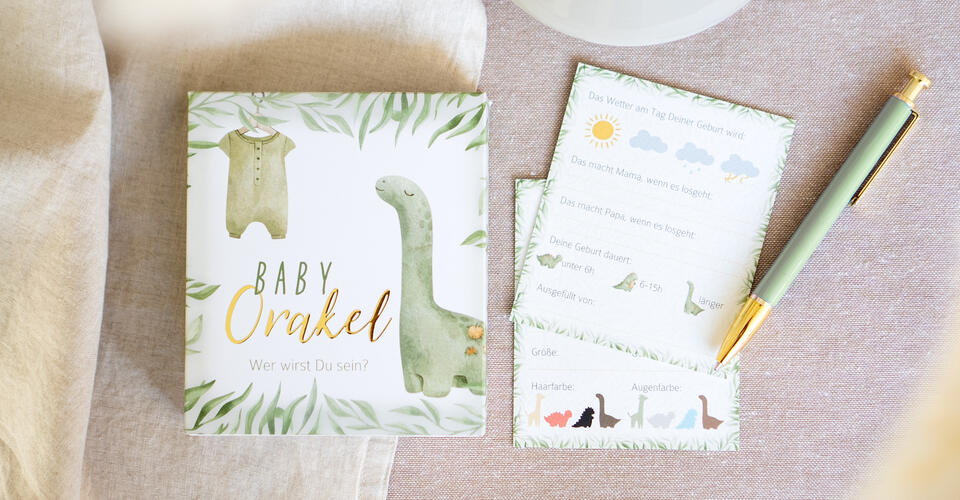 Alle unsere Spiele sind Teil einer eigenen Baby Shower-Kollektion. Möchtest Du Deiner Feier einen schicken {{block2}} verleihen oder sogar eine {{block3}} im süßen Dino- oder Boho-Stil feiern, dann findest Du viele schöne {{block4}}. Von der digitalen Einladungskarte über passende Flaschenetiketten und Glasanstecker zur Getränkedekoration bis hin zum Gästebuch für liebe Wünsche. Lass Dich einfach von unseren bezaubernden Kreationen für eine unvergessliche Babyparty inspirieren.{{block10}}