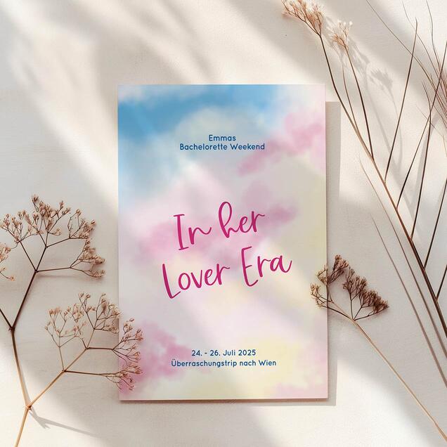 Du planst den Junggesellinnenabschied für Deine beste Freundin oder Schwester? Let's get the party started! Unsere personalisierbaren digitalen Einladungen, kreativen Dekoaccessoires und hochwertigen Fotoprodukte machen es Dir leicht, aus diesem Tag ein echtes Highlight für die Bride to be zu machen. Ob glamourös, verspielt oder trendy: Lass Dich von unseren aktuellen Kollektionen inspirieren und zaubere einen JGA, der allen noch lange in schöner Erinnerung bleibt.