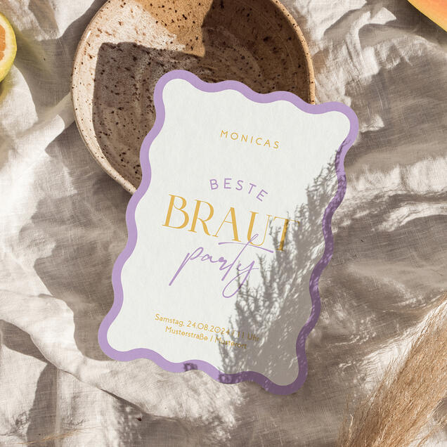 Gern kannst Du auch ein Motto und den Kleidungstil zum Junggesellinnenabschied vorgeben. Besonders stimmungsvoll wird die Feier, wenn beides auf das Design Deiner gewählten Papeterie-Kollektion abgestimmt ist. Überlege Dir auch, ob die zukünftige Braut ein gemeinsames Geschenk bekommt, wie beispielsweise ein Fotobuch mit Bildern und Anekdoten von Euch, oder die Anwesenden kleine Gastgeschenke erhalten.