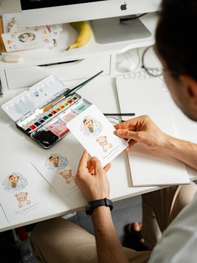 „Jeder von uns hatte in seiner Kindheit ganz sicher einen kleinen putzigen Gefährten aus Stoff, an den wir heute noch liebevoll zurückdenken. Mein Lieblingskuscheltier war ein Teddybär, der unglaublich niedlich und plüschig aussah. Da er immer eine selbst gehäkelte Latzhose von meiner Oma anhatte, hat mein „Magischer Teddybär“ auch eine bekommen. Das macht ihn noch drolliger. Als das Design erstellt und alle Produkte aus der Kollektion fertig waren, habe ich mir gewünscht, selbst noch einmal Kind zu sein. Die Kreation dieses Design-Sets hat mir unglaublich großen Spaß gemacht und ich hoffe, dass damit einmalig schöne Kindergeburtstage gefeiert werden, die lange in Erinnerung bleiben.“ {{block2}}