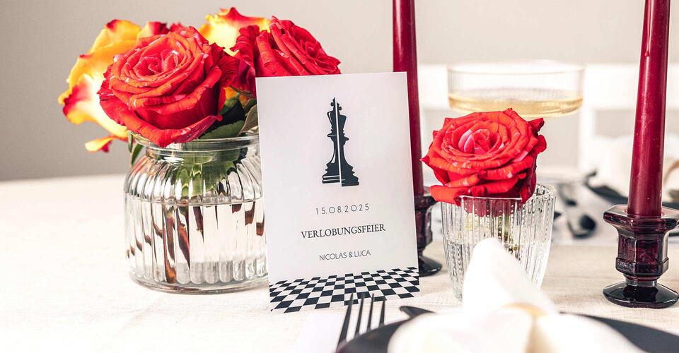 Bei uns könnt Ihr nicht nur zwischen {{block1}} und {{block2}} wählen. In unserem Online-Konfigurator stehen Euch auch viele {{block3}} zur Verfügung. Mit nur wenigen Klicks passt Ihr diese ganz nach Euren Wünschen an. Wenn Ihr möchtet, könnt Ihr noch ein hübsches {{block9}} platzieren sowie über die Funktion „Einzelkartengestaltung" eine individuelle {{block10}} hinzufügen.{{block7}} Oder gefällt Euch beispielsweise das Design „Pride Love" sehr gut, möchtet es aber für Mann-Frau oder Frau-Frau gestalten? Wendet Euch einfach an uns. Wir passen das Schach-Motiv auf der Einladung kostenlos an und senden Euch die überarbeitete Karte vor dem Druck zur Freigabe zu.