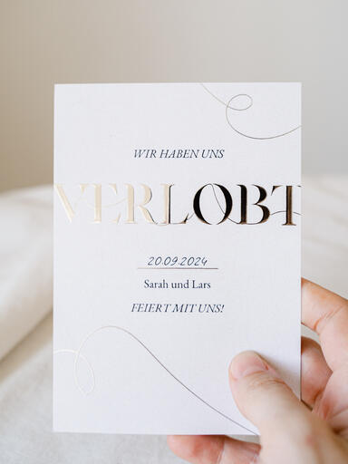 Ob mit Foto oder ohne, im Retro-Stil oder mit filigranem Blütendesign: entdeckt unsere weiteren liebevoll gestalteten Kollektionen für Eure Verlobungsfeier.