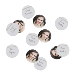 Verabschiede Dich von langweiligen Namenskarten auf der Festtafel zur Firmung und sag ja zu trendigen Glasansteckern, eleganten Anhängern oder stilvollen Aufstellern mit Holzfuß. Deine Gäste werden begeistert sein. {{block1}}