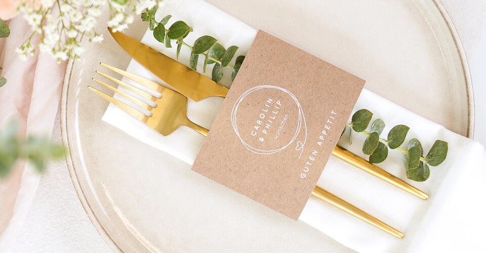 Besteckbanderolen und Serviettenanhänger zur Hochzeit