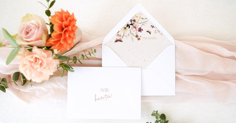Neben Briefkuverts im einheitlichen Design Eurer Hochzeitskarten findet Ihr bei uns auch hochwertige Blanko-Umschläge in verschiedenen wunderschönen Farben. Ob klassisch in Weiß oder Creme, mit charmanter Kraftpapier-Optik, edlem Metallic-Schimmer oder zart getönt in Rosa und Blau – dank der breiten Farbauswahl lässt sich jeder Umschlag harmonisch auf Eure Karten abstimmen.{{block1}}
