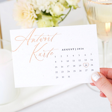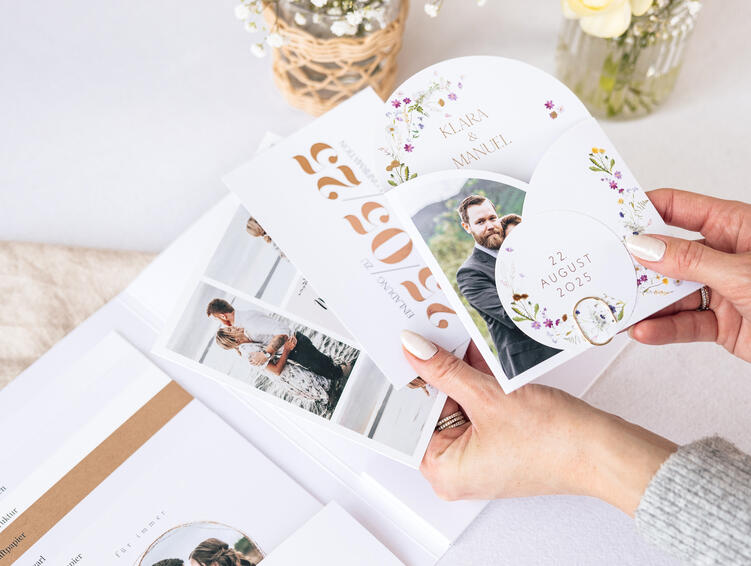 Die Frage aller Fragen wurde mit einem glücklichen „Ja“ beantwortet? Wie wunderbar! Dann teilt jetzt mit originellen Karten und Kuverts die Vorfreude auf Eure Hochzeit im Familien- und Freundeskreis. Personalisiert mit Euren eigenen Texten und Fotos sind sie der perfekte Auftakt für Eure Hochzeit und laden Eure Liebsten herzlich ein, Teil dieses bedeutungsvollen Meilensteins zu sein.