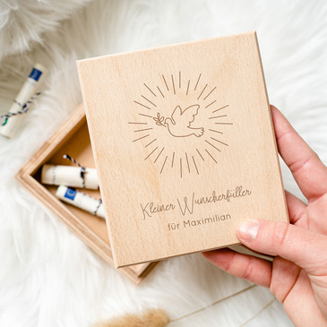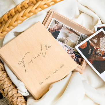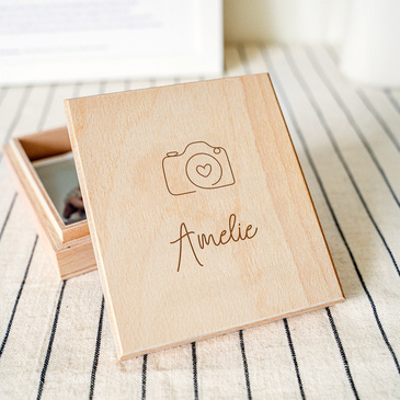 Graviert mit einem Spruch oder Namen ist eine Holzbox das ideale Geschenk für liebe Freunde, Kinder oder für Dich selbst. Sie eignet sich hervorragend, um darin Fotos, Sammelkarten, Schmuck oder kleine Erinnerungsstücke aufzuheben.